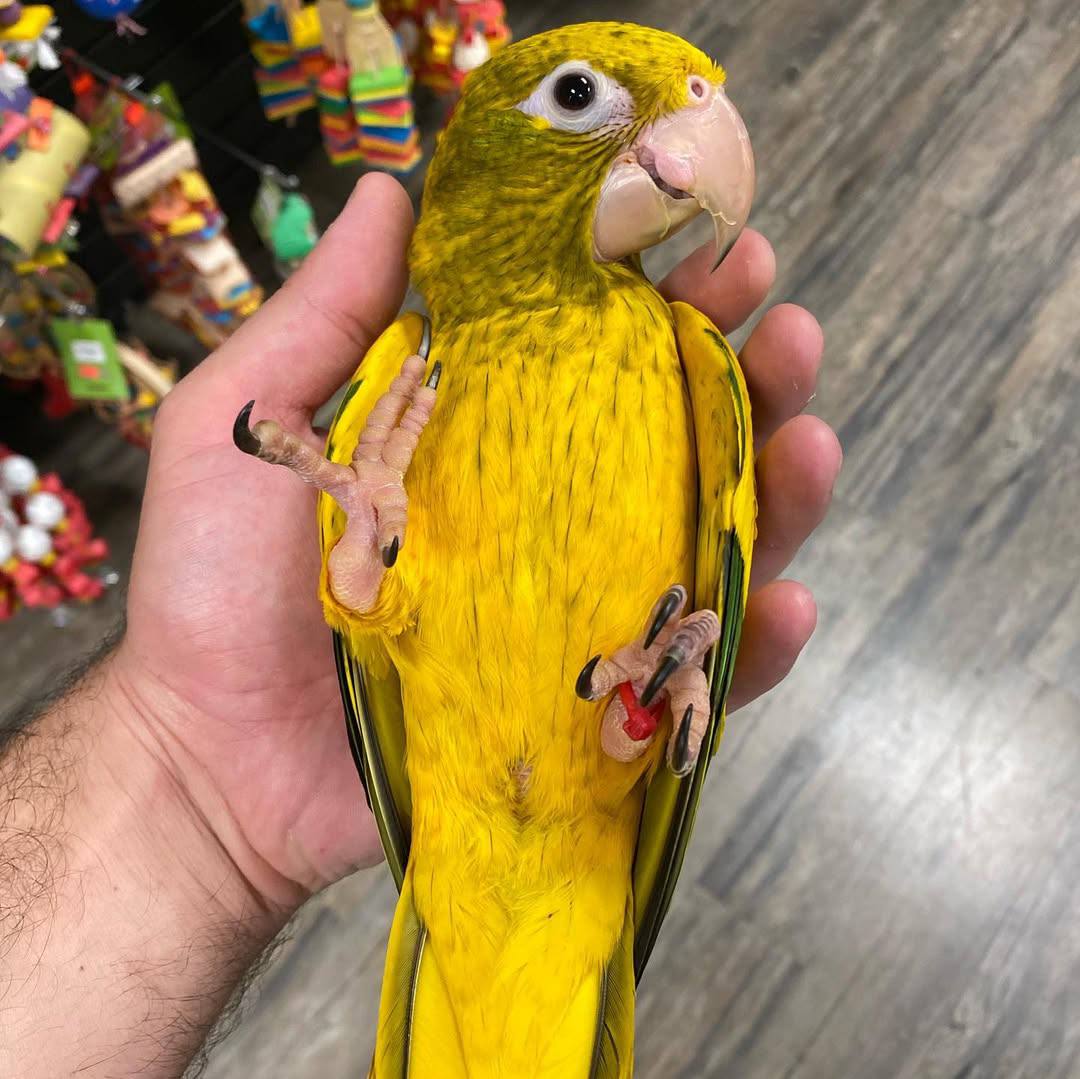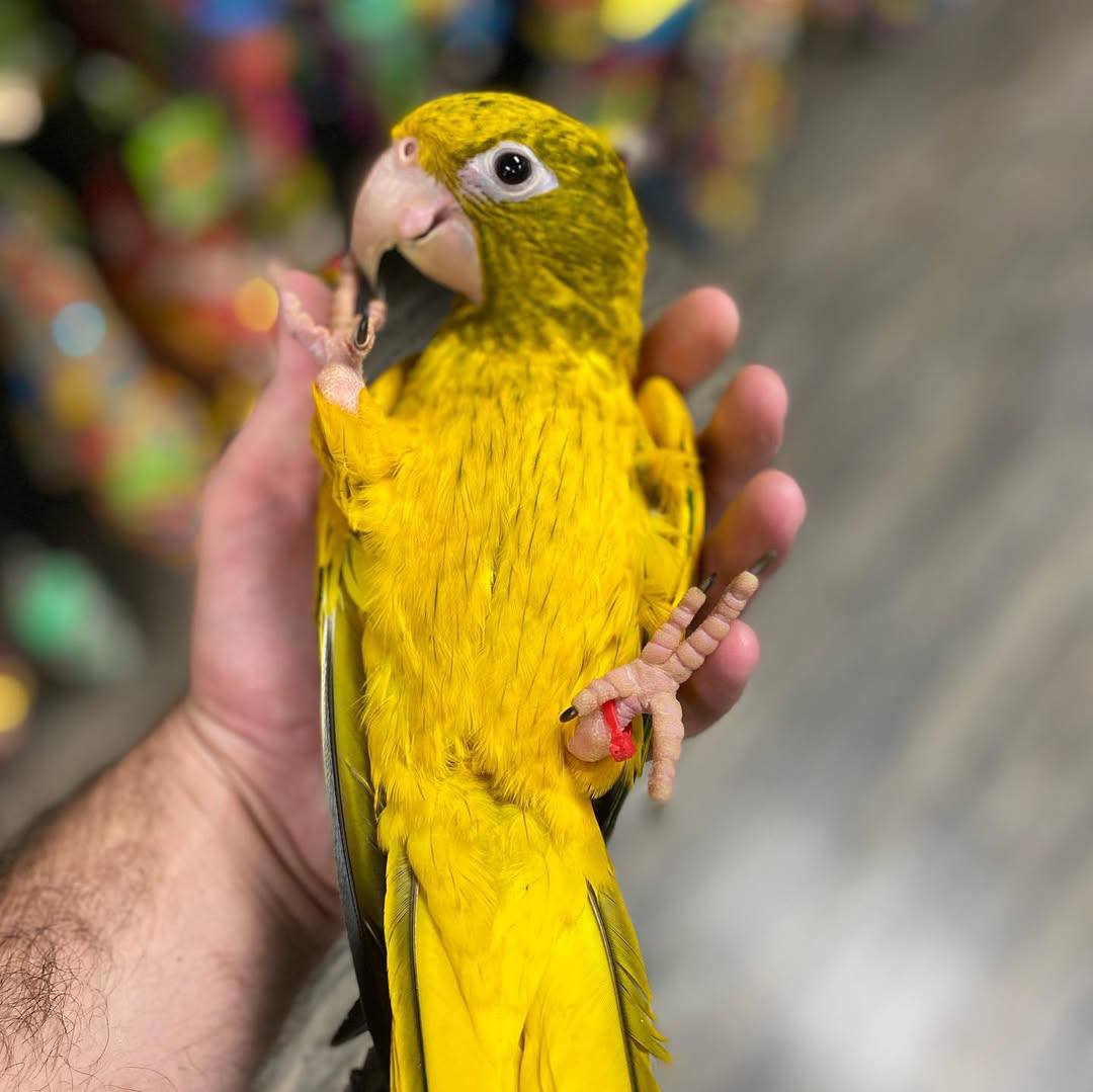 Our Golden Conure is pure sunshine vibrant, loving, and full of personality. it adores being close and sharing every moment. Intelligent, playful, and deeply loyal, it makes a wonderful lifelong companion that brightens every day with joy and charm.