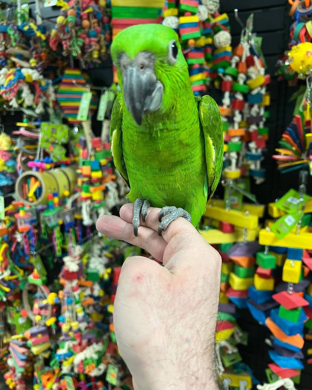 Our Yellow Nape Amazon is a vibrant, intelligent parrot known for its playful and affectionate temperament. These social birds thrive on interaction, making them excellent companions for experienced owners who appreciate their lively and curious nature. Reserve yours now!