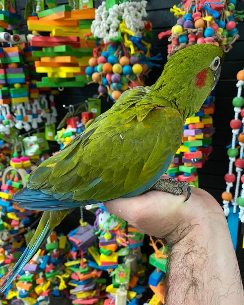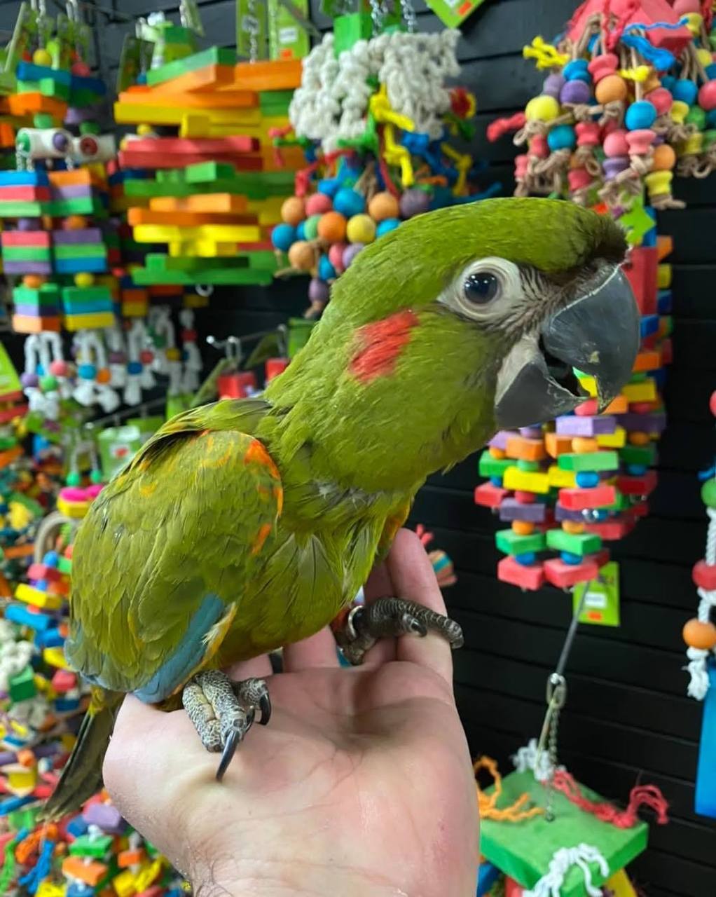 Our Red-Fronted Macaw is a charming little parrot, intelligent, playful, and full of personality. Known for being affectionate and social, it thrives on attention and enjoys interacting with its person. With a gentle, curious temperament, it becomes a loyal companion that brings joy and energy to every day.