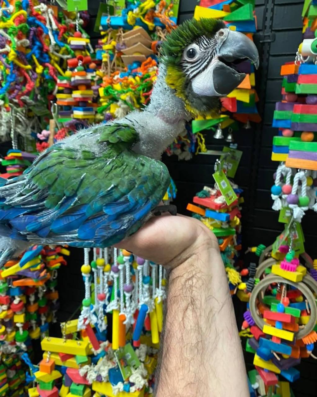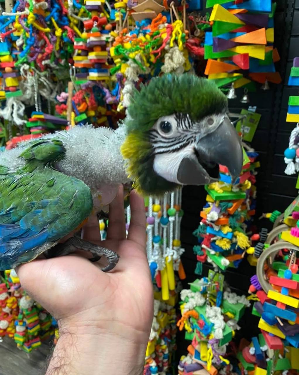 Our baby Miligold Macaw Hybrid is a bright little charmer full of color, curiosity, and personality. Gentle, playful, and affectionate, it loves attention and enjoys being part of daily family life. Intelligent and social, it grows into a loyal companion that brings joy and warmth to every day.