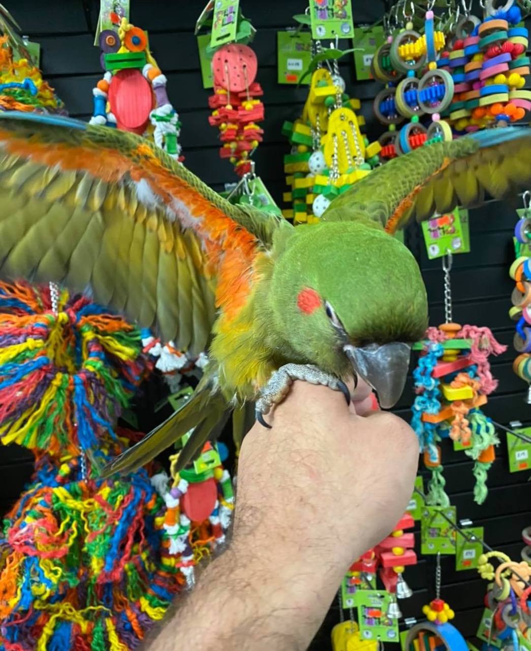 Our Red Fronted Macaw is a rare and intelligent companion known for its playful and affectionate temperament. These social birds thrive with interaction, are great problem solvers, and can form strong bonds, making them wonderful pets for dedicated bird lovers.
