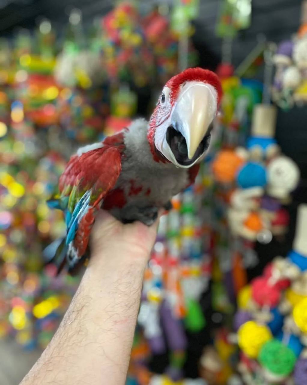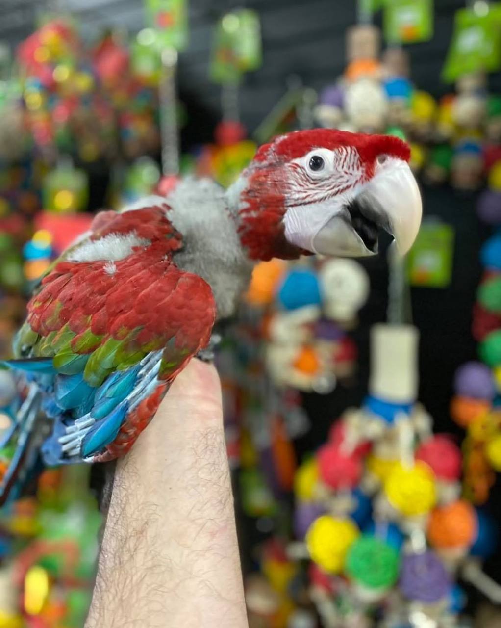Our baby Green Winged Macaw is a gentle giant beautiful, intelligent, and full of heart. With sweet, affectionate nature, it loves cuddles and interaction. Calm, loyal, and incredibly social, it bonds deeply and will grows into a devoted lifelong companion with the right love and care.