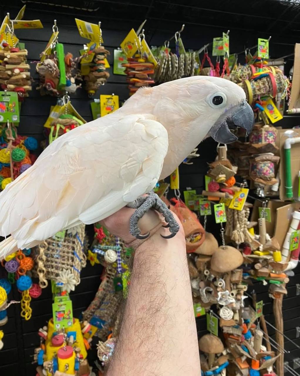 Our Moluccan Cockatoo is a striking parrot with a big heart, playful, affectionate, and full of personality. With its soft peachy-pink feathers and gentle, loving nature, it thrives on attention and interaction. Intelligent, loyal, and social, it becomes a devoted companion that brings warmth, laughter, and joy to every day.