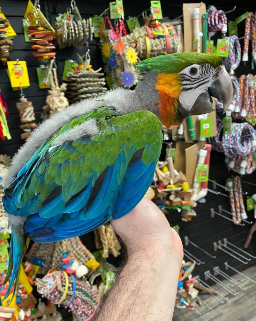 Meet our baby Ruby Gold Macaw, a stunning Known for its affectionate, social nature and high intelligence, Ruby Golds make loyal, engaging companions when raised with love and care. Playful and gentle, they’re perfect for experienced or dedicated new bird owners.