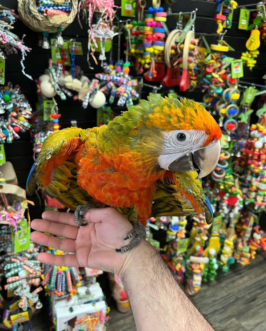 Bright, bold, and full of personality, our Tropicana Macaw is a stunning hybrid with a loving nature and playful charm. Known for being intelligent, affectionate, and social, this macaw thrives on interaction and makes a lifelong feathered companion.